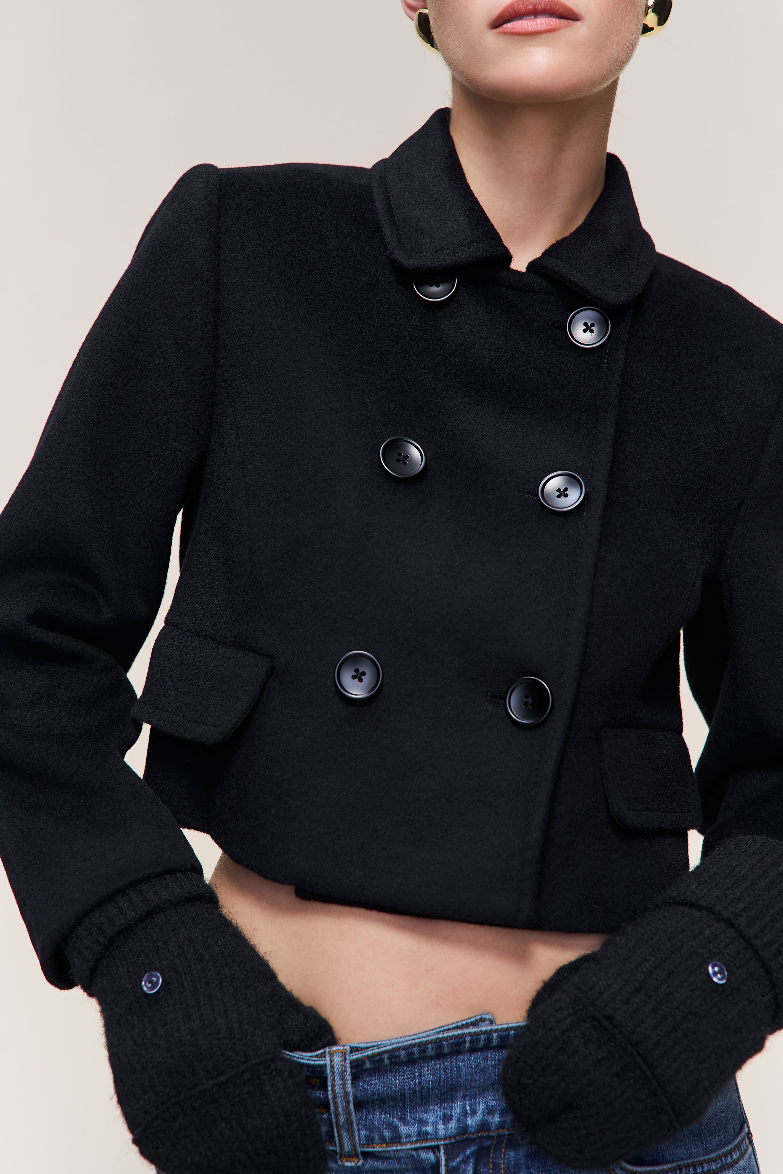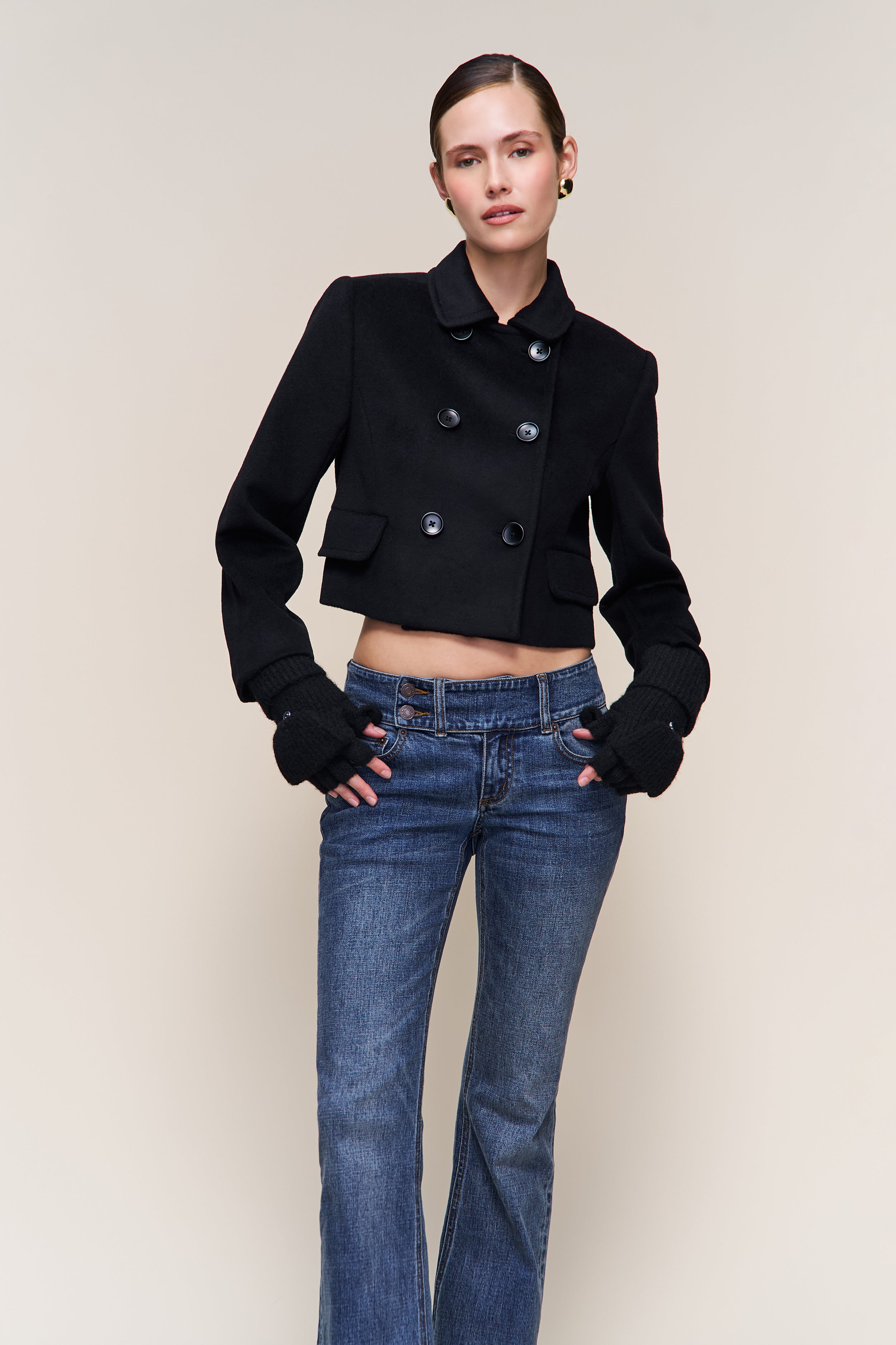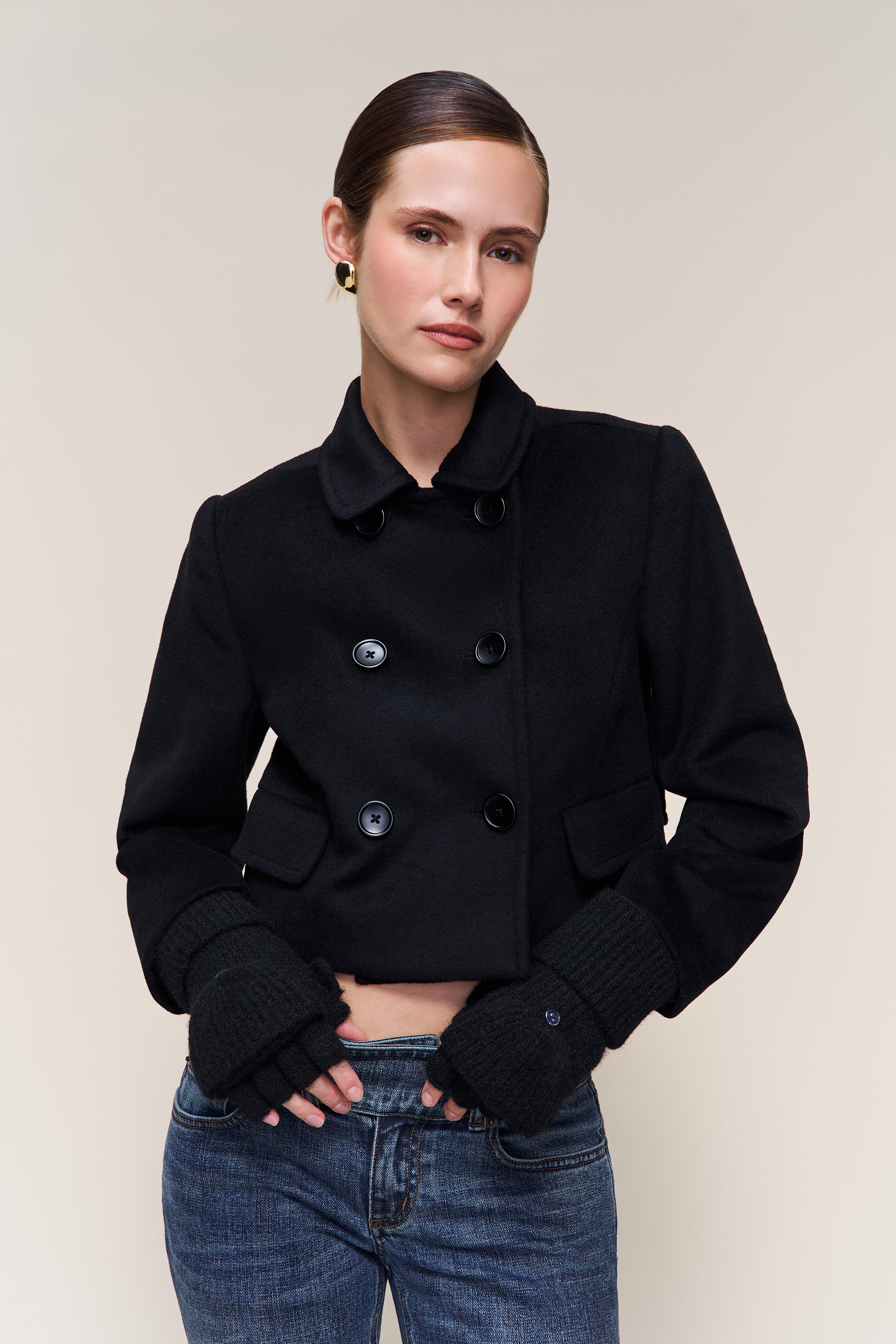 • Soft, ribbed knit mittens with a foldover flap and button closure. A cold-weather essential with an elevated, minimal feel.