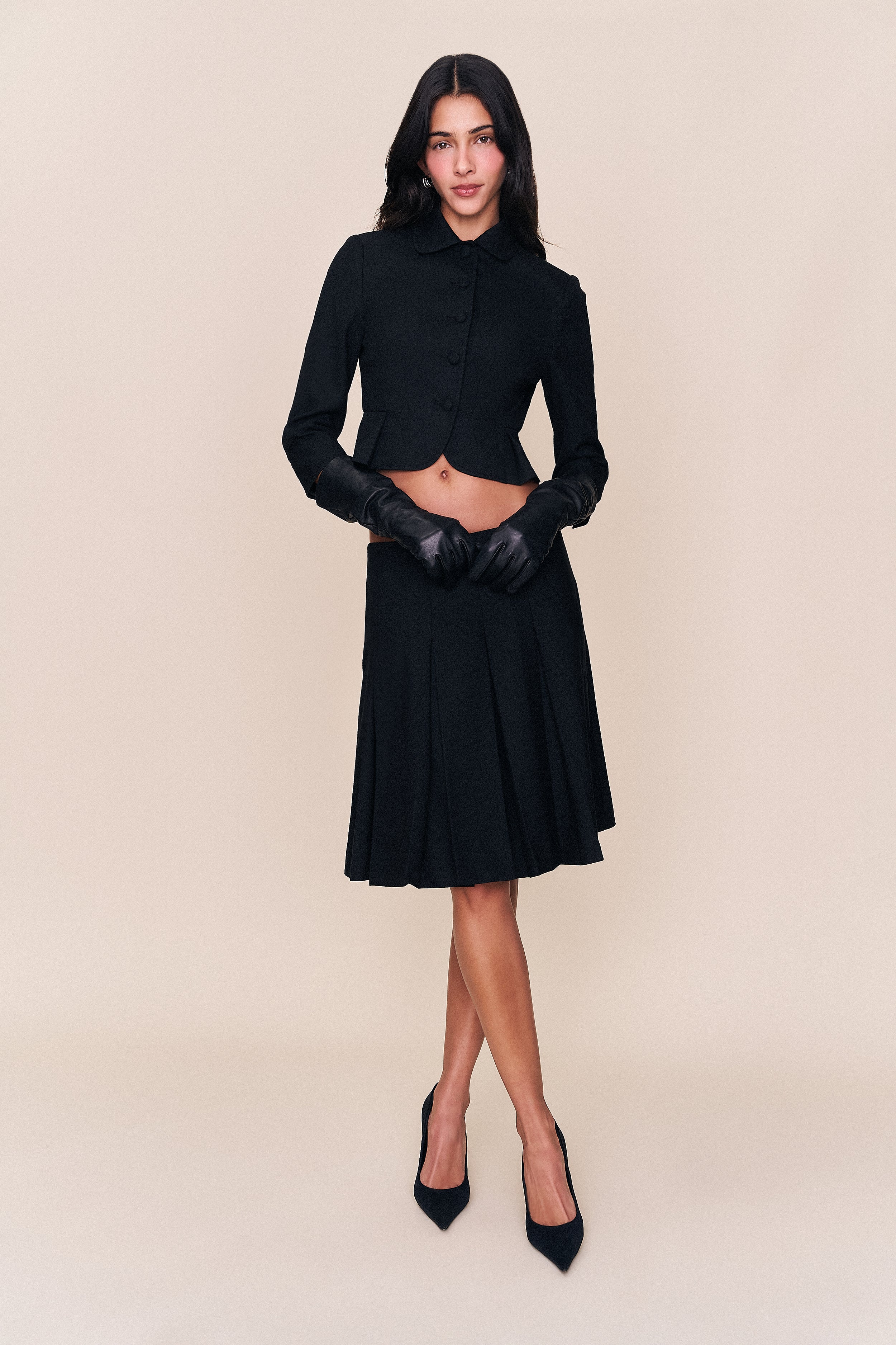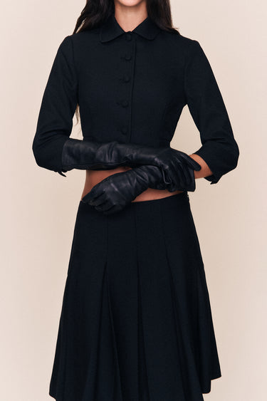 • Our Leather Gloves are made from smooth, supple leather with an elongated, over-the-elbow fit. Minimal, refined, and undeniably dramatic — the perfect finishing touch to elevate any look.