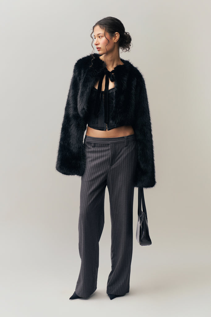 - Introducing our new Alyana Faux Fur Jacket, the perfect topper for your favorite dress. This ultra-soft, plush coat adds a touch of glam to any outfit while keeping you warm and stylish. Its cropped length is designed to flatter, making it the ideal piece to throw on for a night out or a special occasion.
