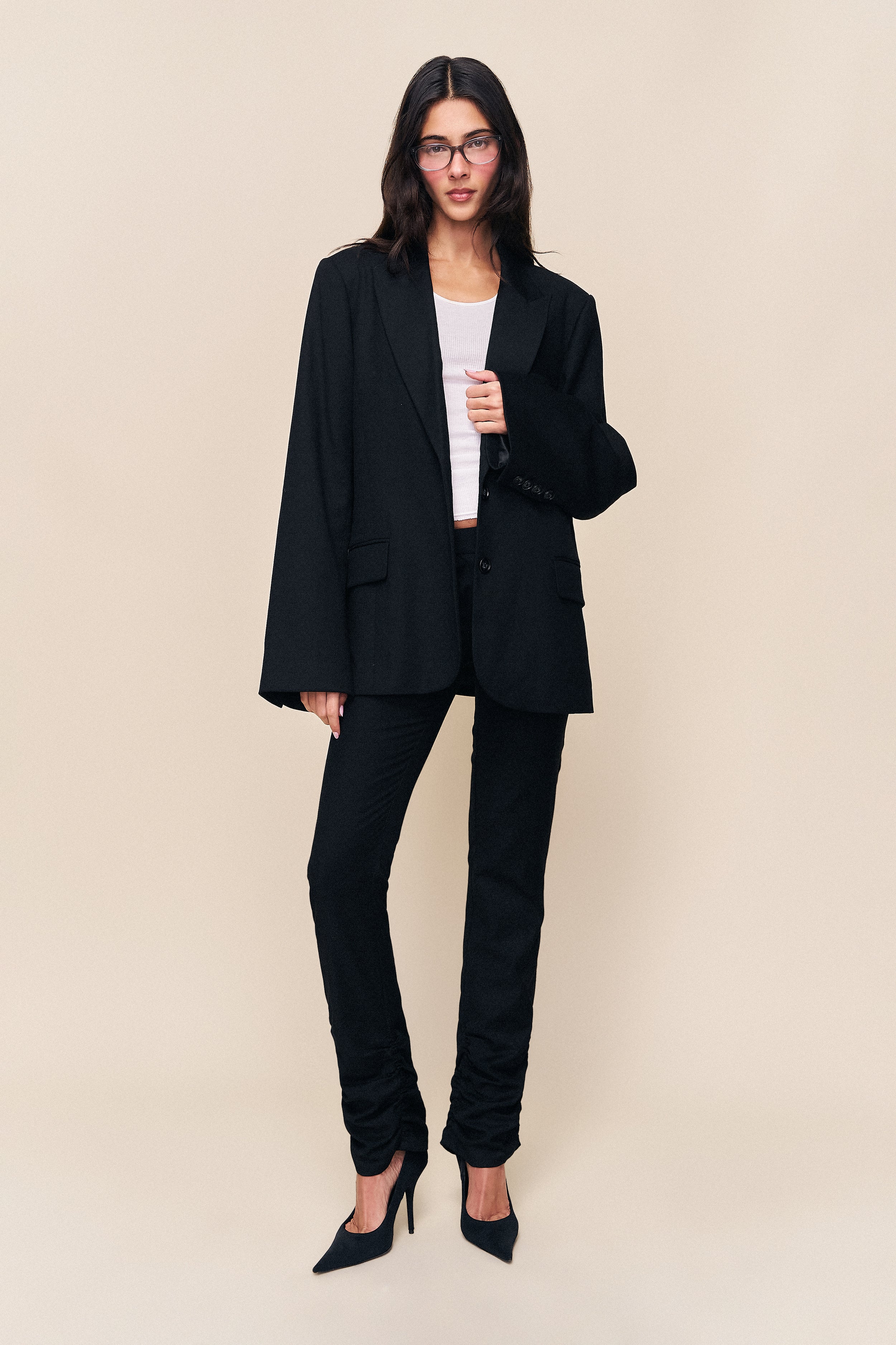 • The Perfect Oversized Blazer is cut with a relaxed, boxy silhouette for effortless layering. Featuring a notched lapel, two-button front closure, and flap pockets, it blends tailored structure with a modern oversized fit.