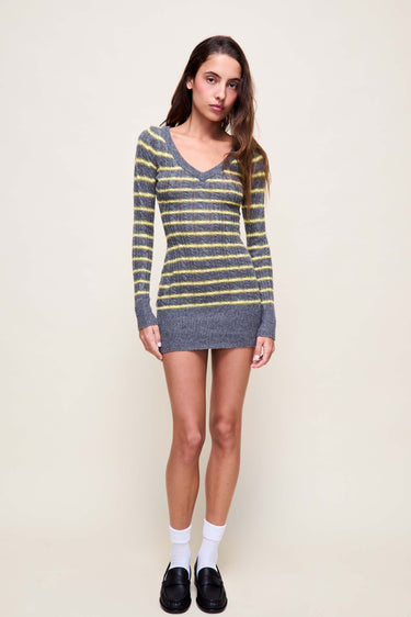 - Soft, sculpted, and effortlessly feminine—the Poet Mini Dress is designed to flatter from every angle. Crafted in a textured knit with a subtle cable pattern throughout, this body-skimming silhouette features a deep V neckline, long sleeves, and a mini hem that hits just right. Stretchy yet supportive, it sculpts the body with effortless comfort.