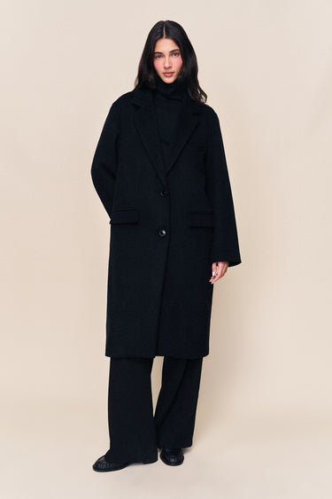 • The Verona Coat is a timeless, tailored silhouette crafted in a soft, structured wool blend. Designed with an oversized fit, sharp lapels, and a clean two-button front, it drapes effortlessly over sweaters and suiting. A classic layer with understated polish.