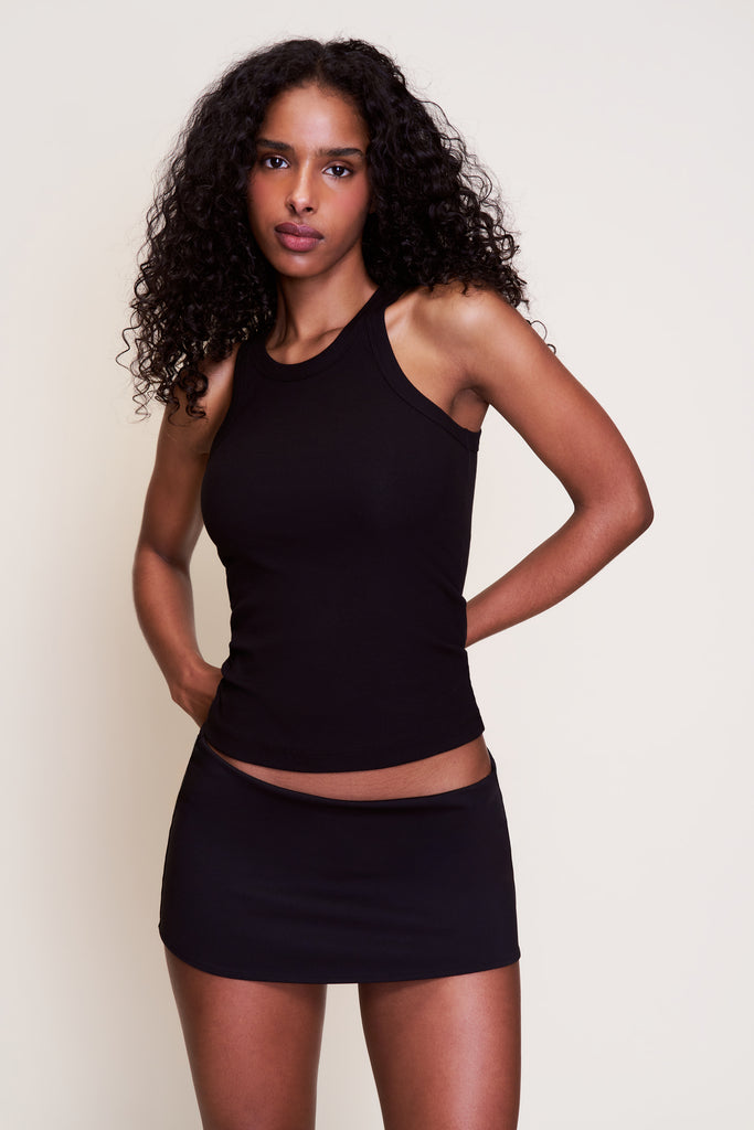 • This ribbed cotton tank top features a fitted, body-hugging silhouette for a sleek, flattering look. Sleeveless and lightweight, it offers effortless comfort while adding a touch of texture to any outfit. A versatile wardrobe essential for any season.