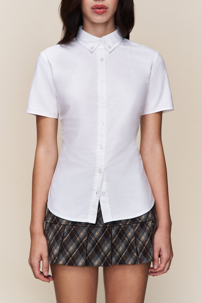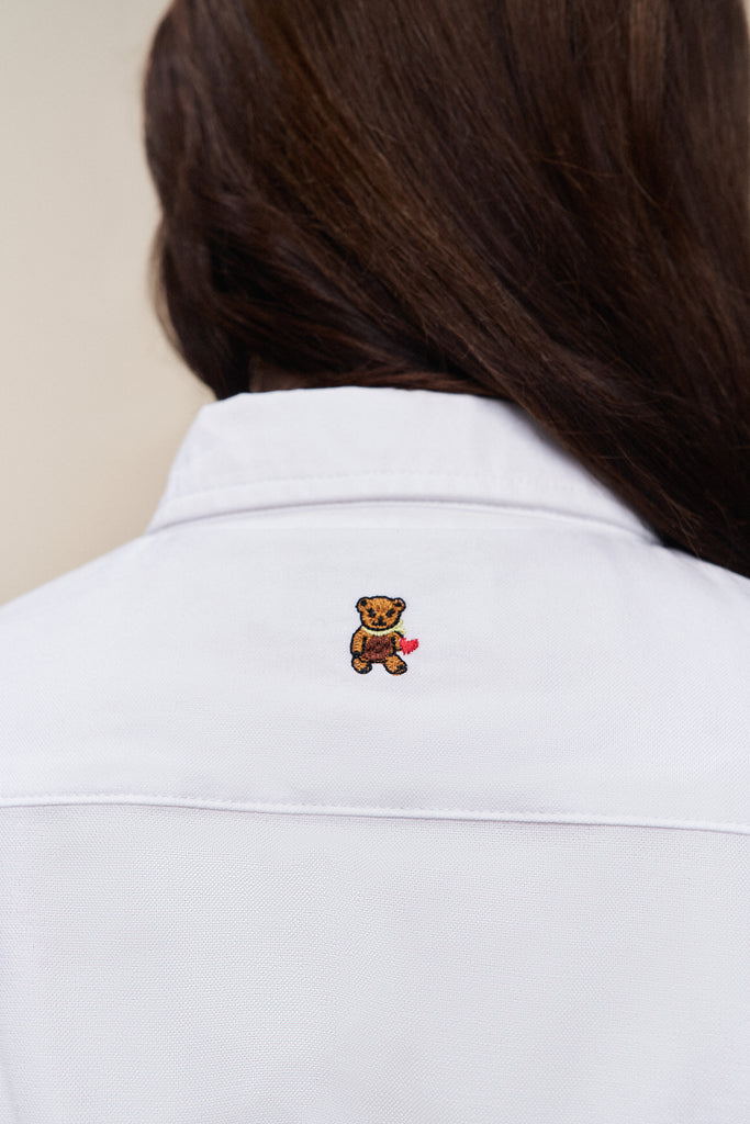 - The Classic Short Sleeve Oxford is tailored for a polished yet effortless fit. Featuring a crisp button-down front, pointed collar, and contoured seams for subtle shaping, it’s a modern take on a timeless wardrobe staple. A mini embroidered bear detail at the back adds a playful touch.