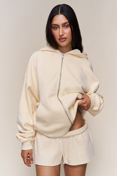 - These ultra-soft fleece shorts are crafted for comfort with a relaxed fit, adjustable drawstring waist, and raw-edge detail for an undone finish. Perfectly lived-in and effortlessly cool