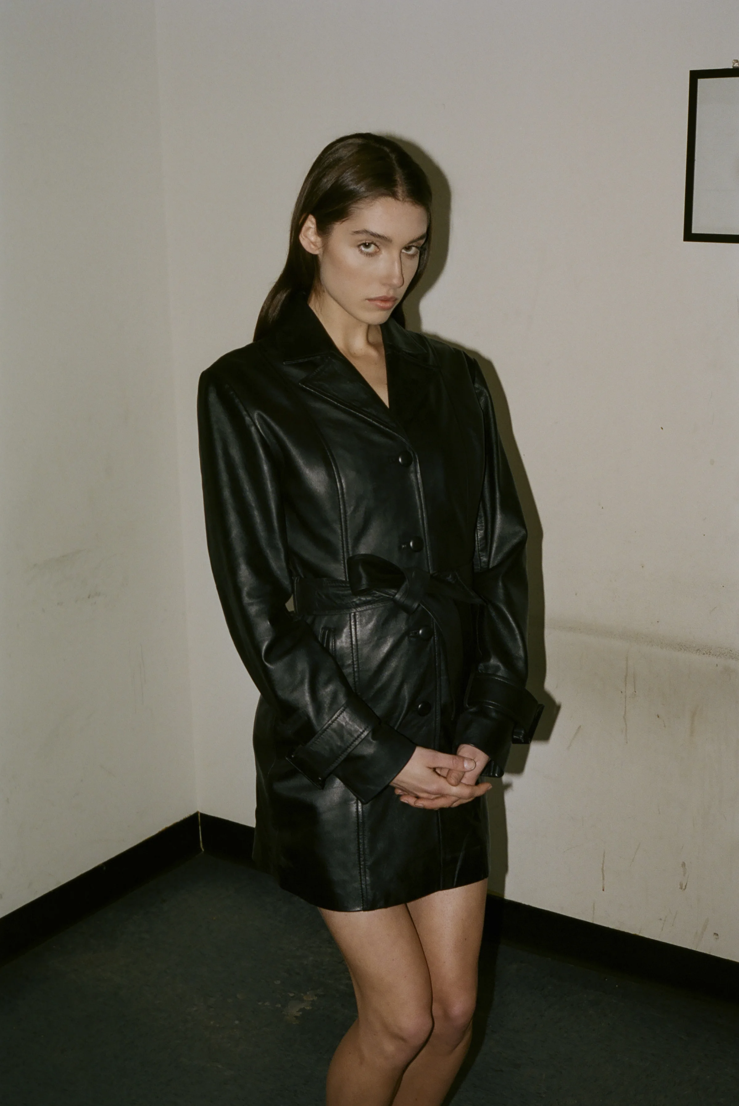 BELTED LEATHER TRENCH COAT